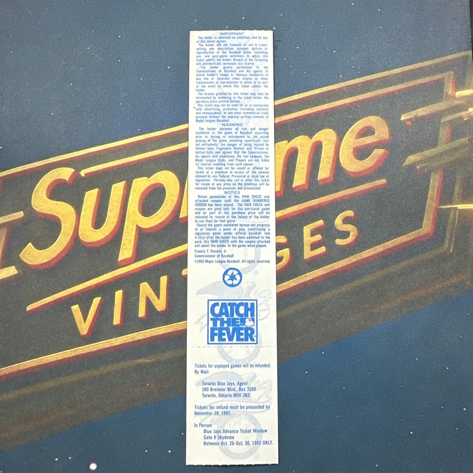 1992 American League Championship Full Ticket Toronto Blue Jays Game 2 MINT Gem
