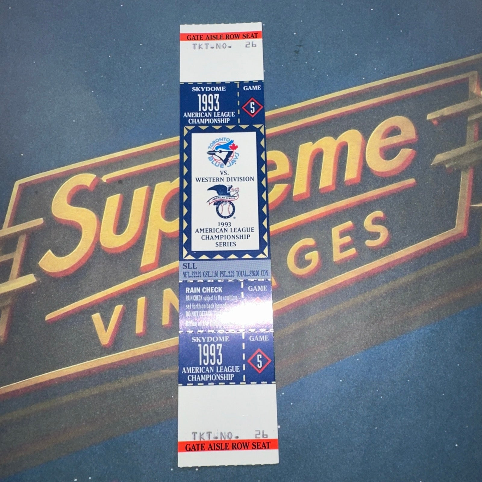 *IN MINT CONDITION* Would Grade at least an 8 by PSA Step back in time to the electrifying atmosphere of the 1993 American League Championship with this full ticket to Game 5 between the Toronto Blue Jays and the Milwaukee Brewers. A must-have for baseball aficionados and collectors alike, this original piece of sports memorabilia captures the essence of the era and the pinnacle of the Blue Jays' journey that season. Proudly manufactured in Canada and vintage by nature, it's an authentic slice of baseball history that has been carefully preserved. Ungraded, it presents a tangible connection to the sport's rich legacy and is an ideal addition to any collection commemorating the World Series and the storied Toronto Blue Jays team. |