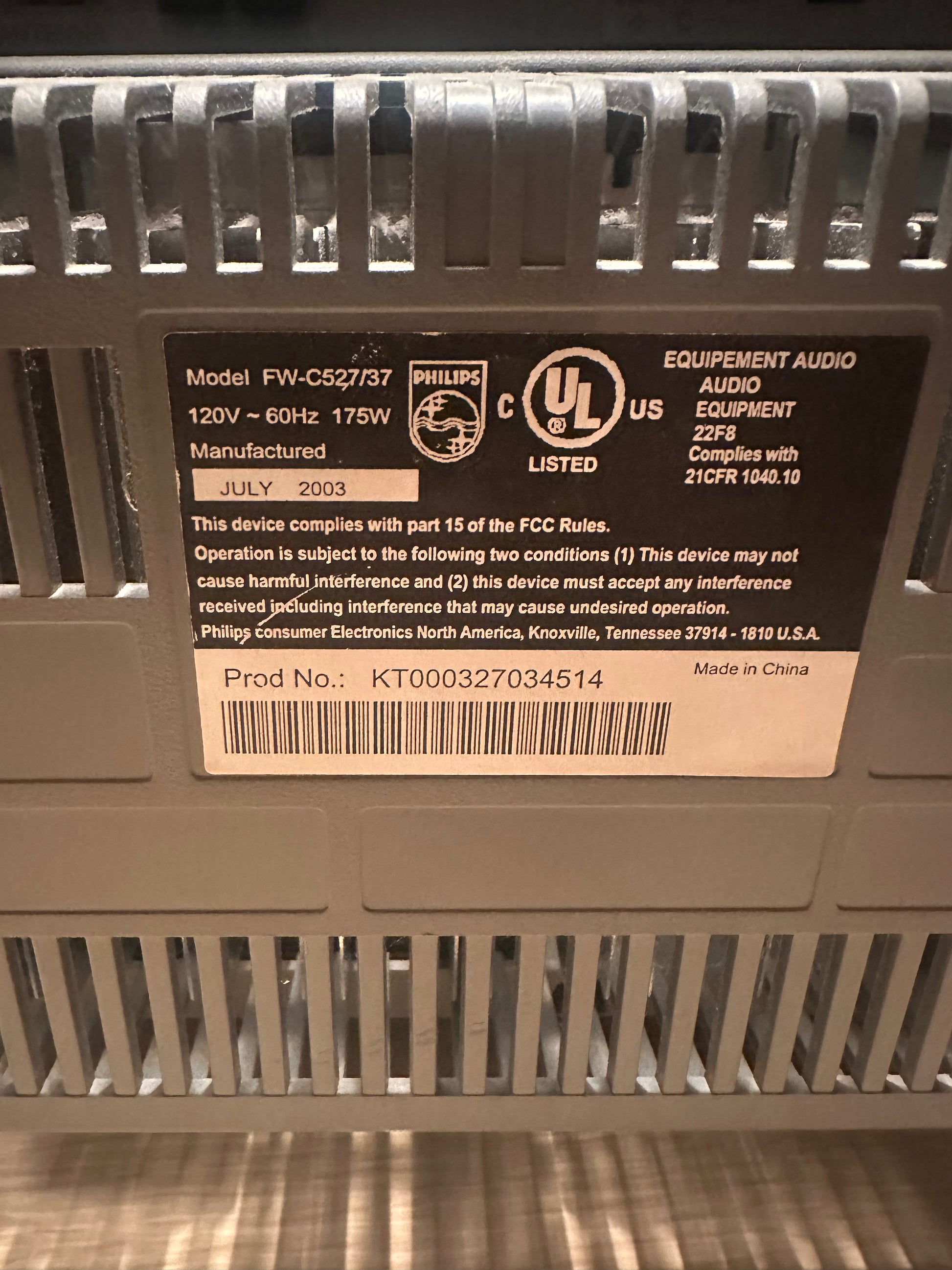 *I PREPAY ALL US BUYER TARIFFS NO TARIFFS FOR YOU TO PAY, EVERYTHING YOU PAY IS ONLY AT CHECKOUT NO HIDDEN FEES* Elevate your audio experience with the Philips FW-C527/37 Dual Cassettes 3 CD Changer, a versatile entertainment unit designed to meet your listening needs. It boasts a sleek silver design that will complement any home audio setup. Enjoy your favorite music with the capability to play CD, CD-R, and cassette tape formats, alongside an AM/FM digital tuner for clear radio reception. The unit features a three-disc CD changer, ensuring a smooth transition between albums without interruption. With dual cassette decks and an auxiliary RCA L/R input, you can connect external audio sources for an even more expansive listening range. Whether for a quiet evening at home or a lively gathering, this Philips compact and shelf stereo system delivers a rich audio performance. |