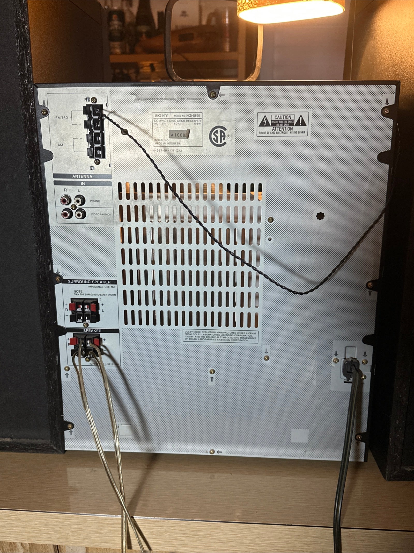Crafted in a sleek black color, the system integrates effortlessly into your home decor. The Sony LBT-D690 boasts AM/FM band capabilities, phono and video audio inputs, and the option to connect via raw cable speaker jacks. This Indonesia-manufactured model stands as a testament to the enduring quality of Sony's audio engineering from the late '90s.