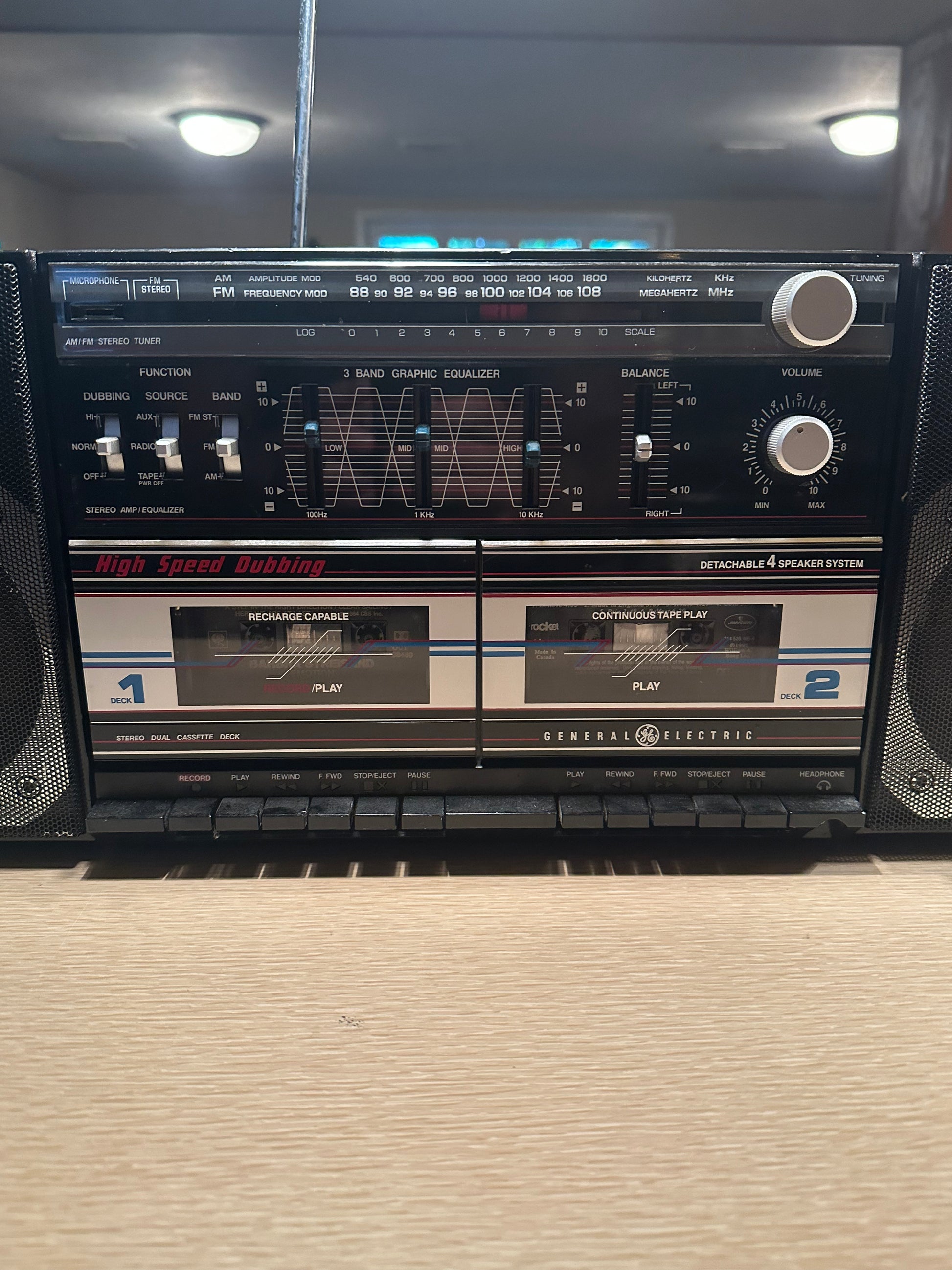 VTG RARE 1980s GE 3-5671A Dual Cassette Stereo Boombox AUX Detachable Speakers